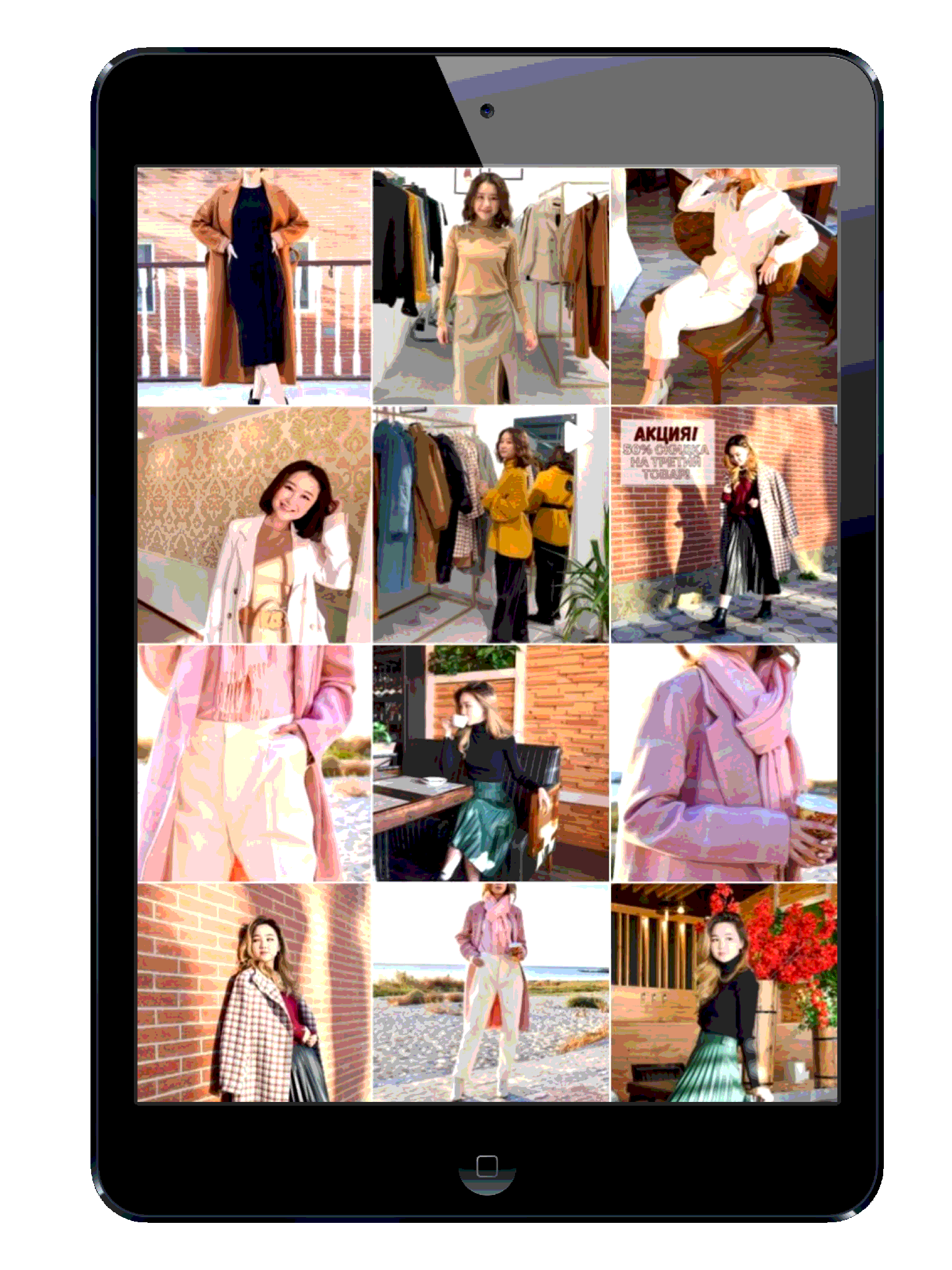 Составление визуала для магазина одежды (создан moodboard, проведена фотосъёмка, из получившихся фото составлен визуальный ряд)