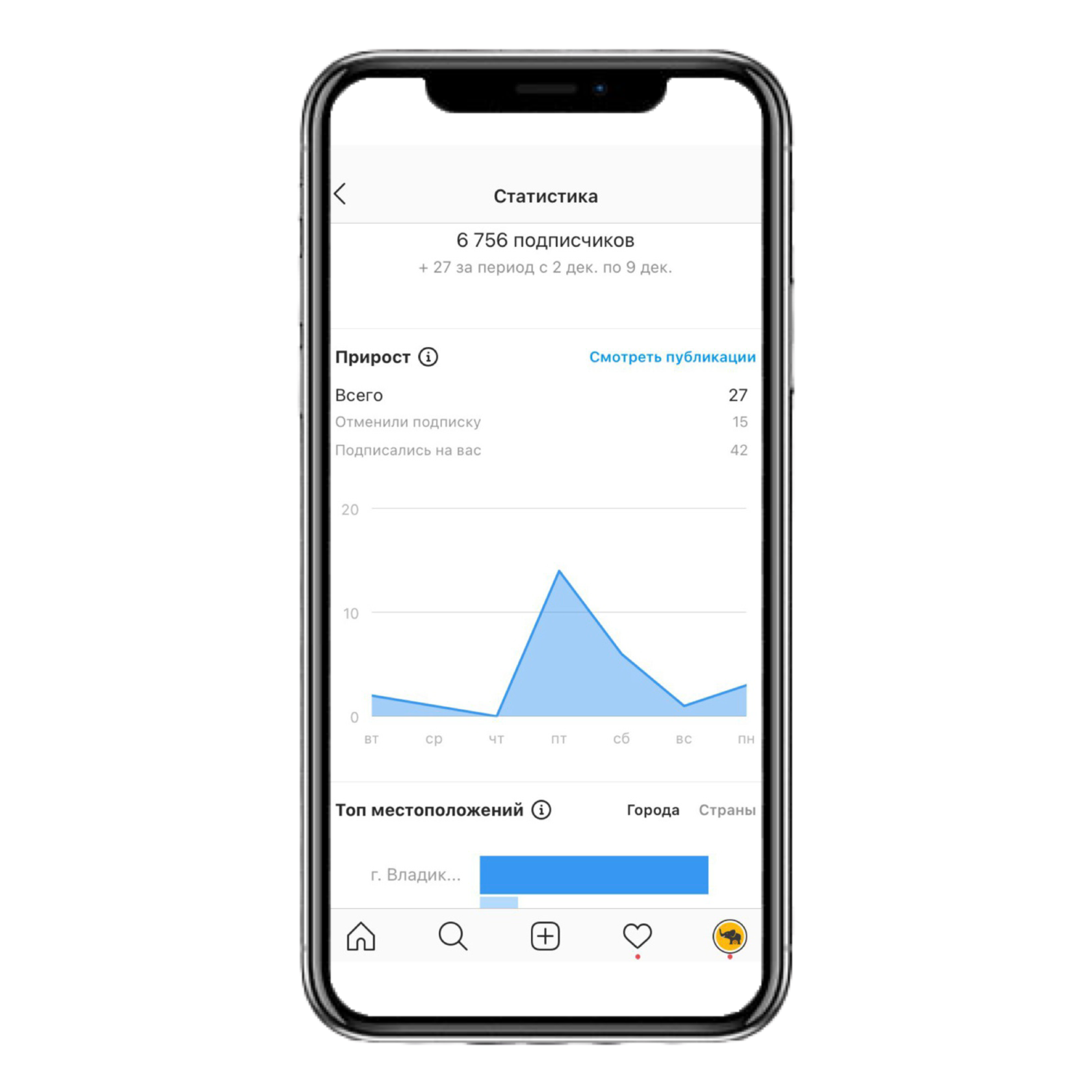 Прирост подписчиков за 7 дней составил 42 человека