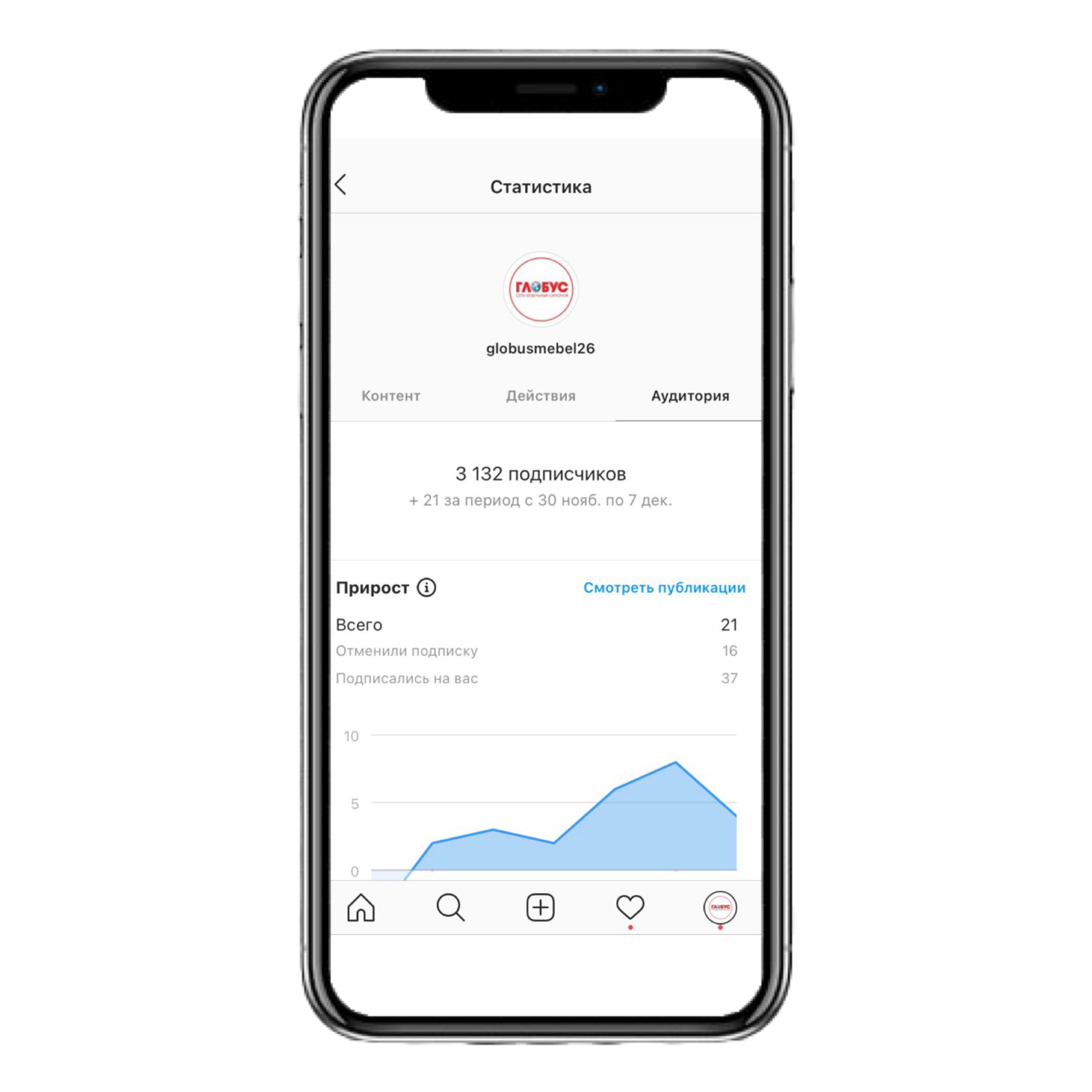 Прирост подписчиков за 7 дней составил 37 человек